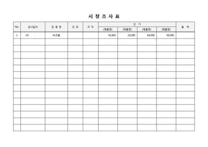시장조사표(품목별)