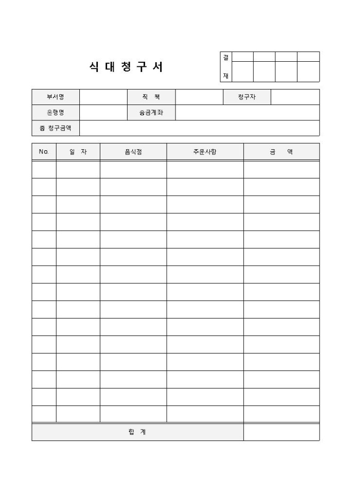 식대청구서