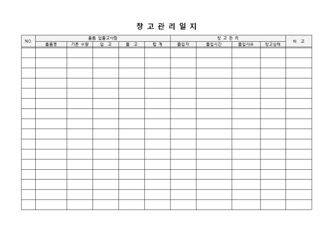 9,000원/월창고관리일지 입니다. 물품출입사항, 창고관리, 비고 등으로 구성되었습니다. 제품에 따른 입출고 상황을 기재하고 물품 총량을 계산하는데 효과적입니다.