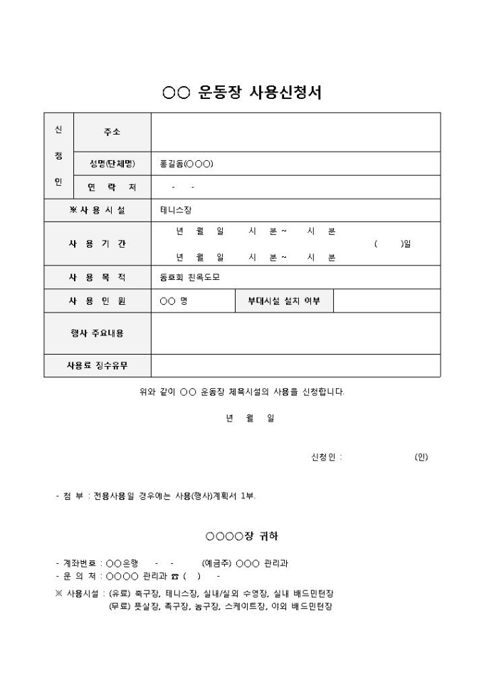 운동장사용승인신청서