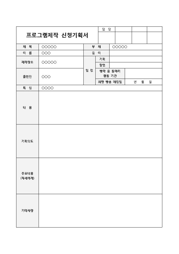 프로그램 제작 신청 기획서