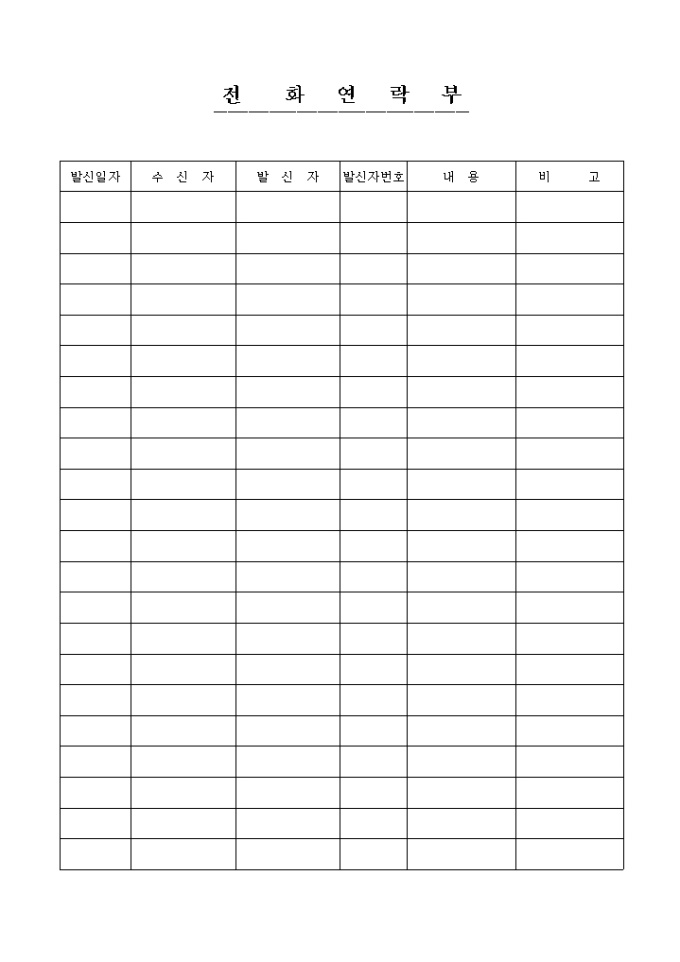 9,000원/월전화연락부 양식입니다. 수신자, 발신자, 발신번호, 내용등으로 구성된 전화연락부 양식입니다.