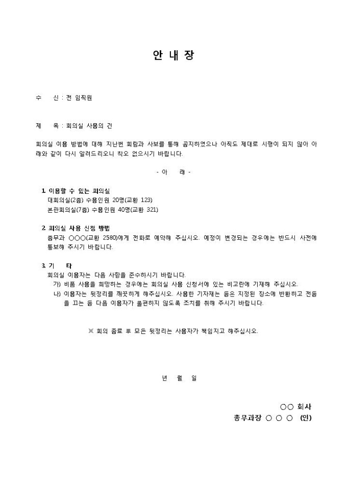 회의실사용안내장