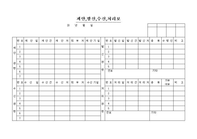 제안,발신,수신,처리보의 업무를 한꺼번에 관리하실수 있는 양식입니다.