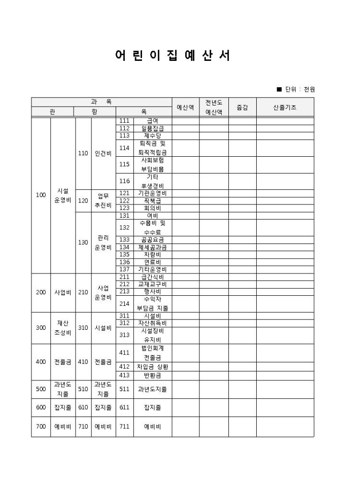 어린이집 예산서