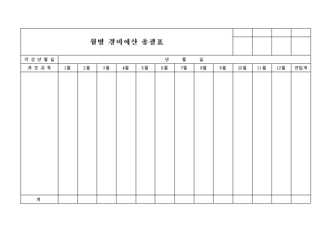 9,000원/월월별 경비 예산을 적어 놓을 수 있는 양식입니다.
