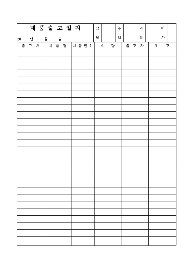 출고처별 출고내역을 기록 관리하는 양식입니다.
