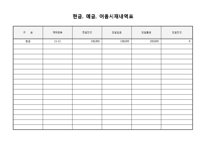 현금, 예금, 어음시재내역표