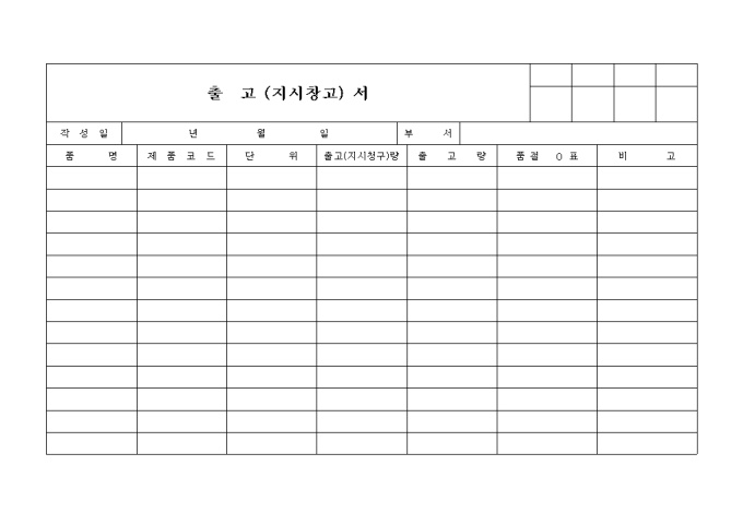 제품별 출고단위와 출고량,품절등의 항목으로 구분된 양식입니다.
