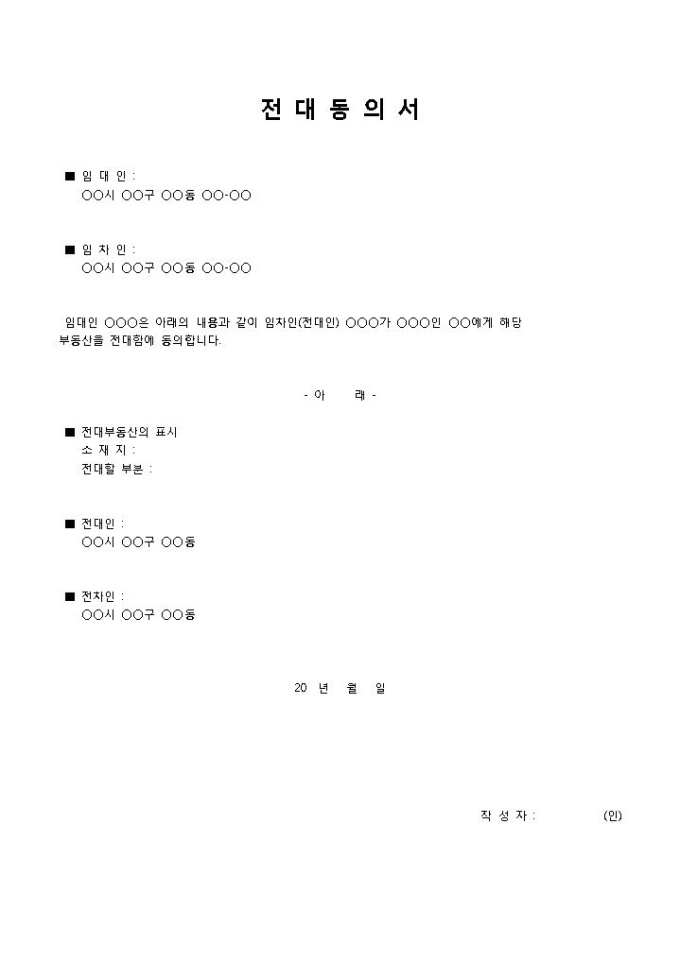 전대동의서(간단양식)