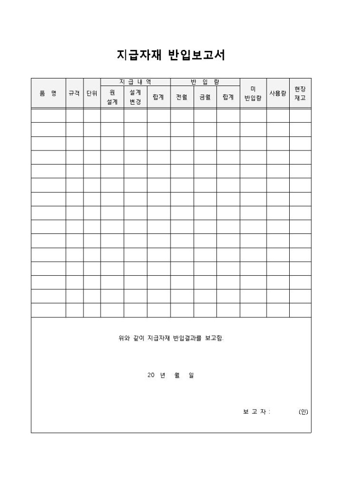 지급자재 반입보고서