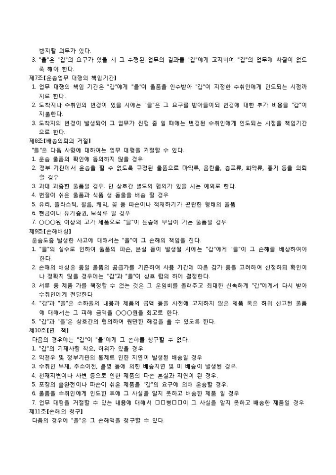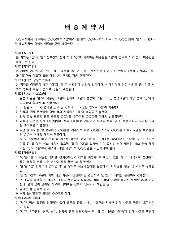 9,000원/월배송계약서입니다. 배송계약 내용과 배송 계약시 활용 할 수 있습니다.