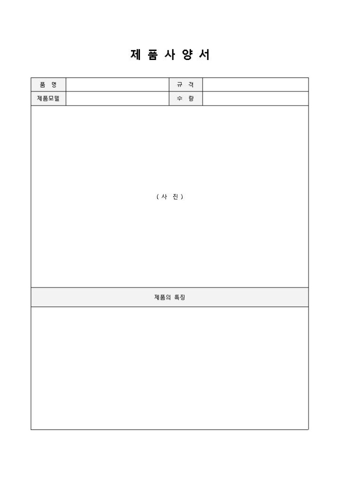 9,000원/월제품사양서입니다. 품명, 규격, 수량, 제품모델, 사진, 제품의 특징으로 구성되어 있습니다. 제품에 대한 사양서를 작성할 수 있으며, 사진을 첨부하여 사용할 수 있습니다.