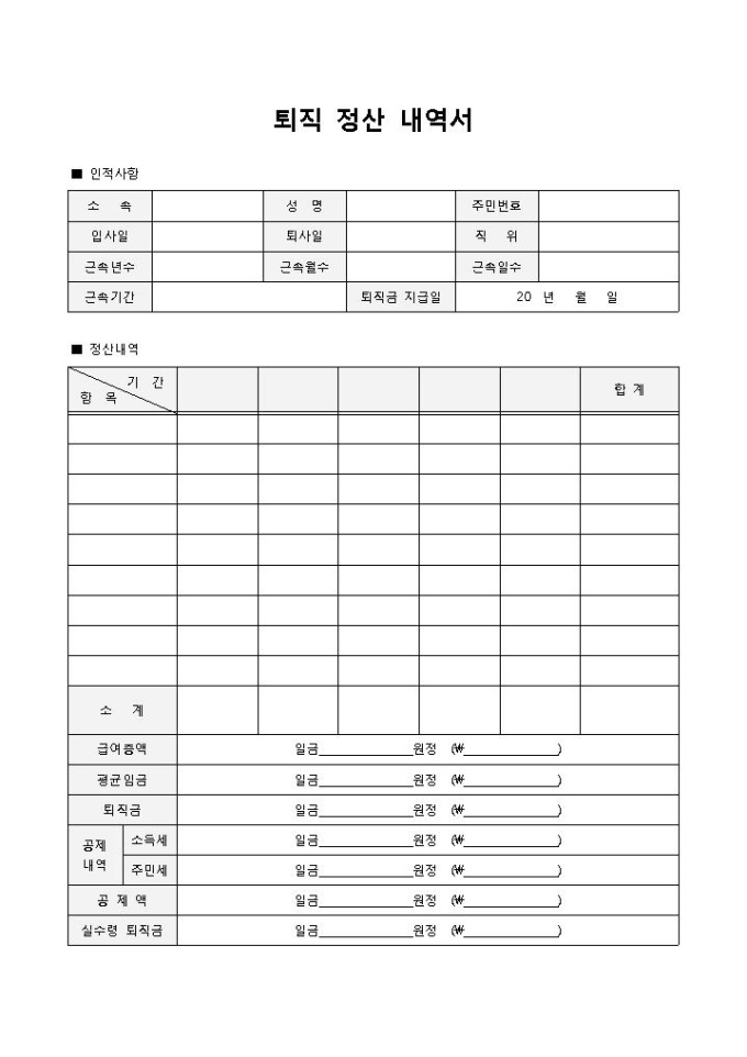 퇴직 정산내역서