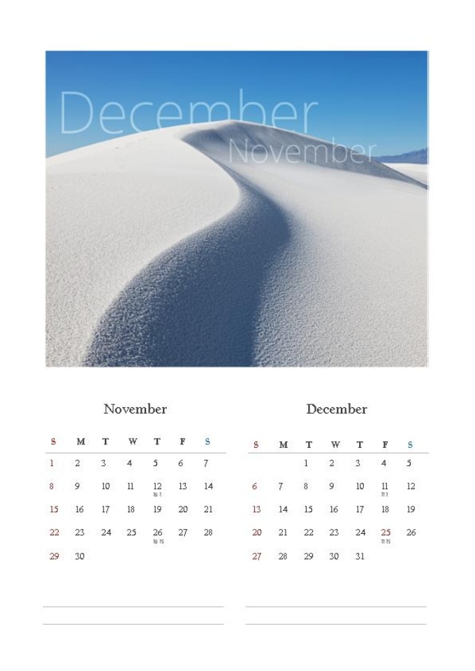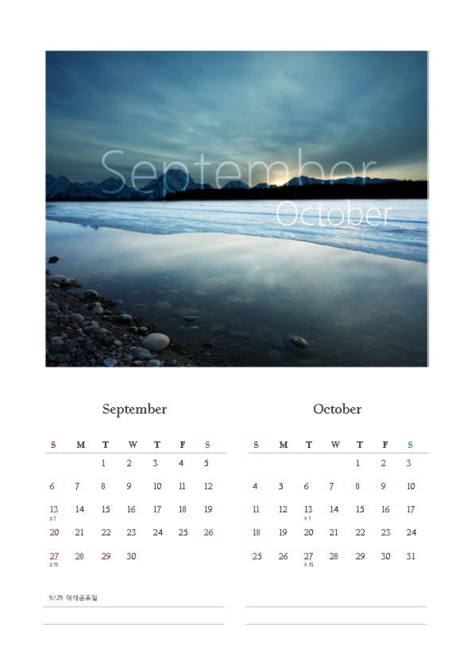 2015년 디자인달력(포토 음력)입니다. 감성적인 사진과 타이포그래픽의 조화가 돋보이는 달력입니다. 한 장에 두 달로 구성되어 있으며 하단에 기념일을 기록할 수 있는 공간이 마련되어 있습니다. 부착형, 액자형, 다이어리형 등 여러가지 형태로 다양하게 활용해보세요.