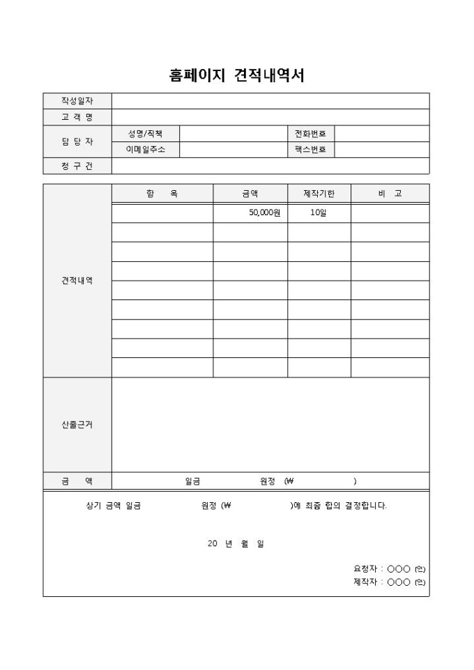 견적내역서(홈페이지)
