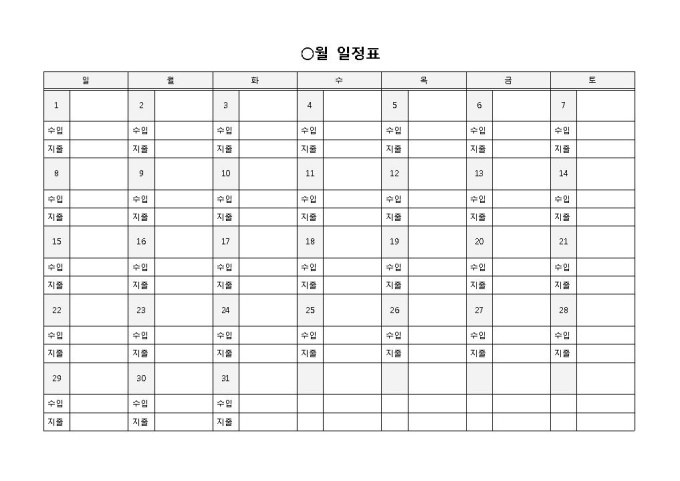 9,000원/월달력 일정표 입니다. 월에 따른 수입 및 지출내역을 기입할 수 있고 금일 혹은 명일날 발생하게 될 사항을 기입할 수 있습니다.