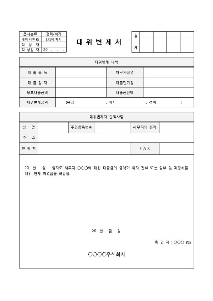 대위변제서(기본)