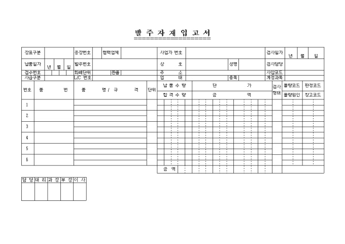 9,000원/월주문해서 입고된 자재의 상세정보를 기재하는 양식입니다. 결재받는란이 있으며 가로로 만들어진 양식이네요..