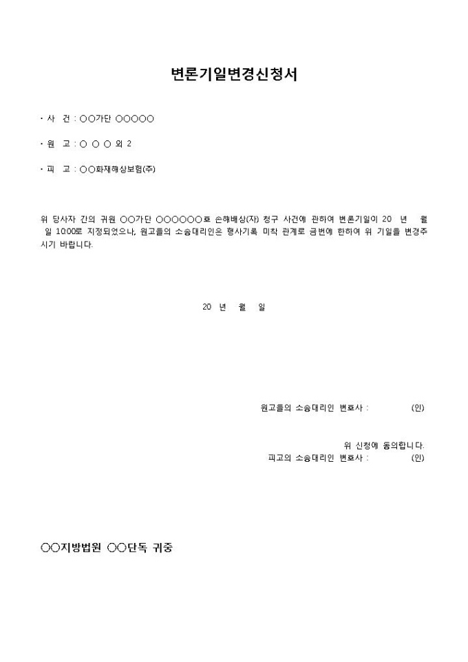 9,000원/월변론기일변경신청서(형사기록미착)입니다. 사건, 원고, 피고 등의 항목으로 구성되어 있습니다. 형사기록 미착을 이유로 변론기일 변경을 신청하는 내용의 양식입니다.