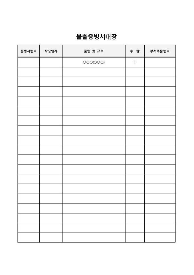 9,000원/월불출을 하고 난 뒤에 증빙서의 관리를 편리하게 하기위해 사용되는 불출 증빙서 대장 양식입니다. 증빙서번호, 작성일자, 품명 및 규격, 수량, 부서주문번호 등으로 구성되어 있습니다.