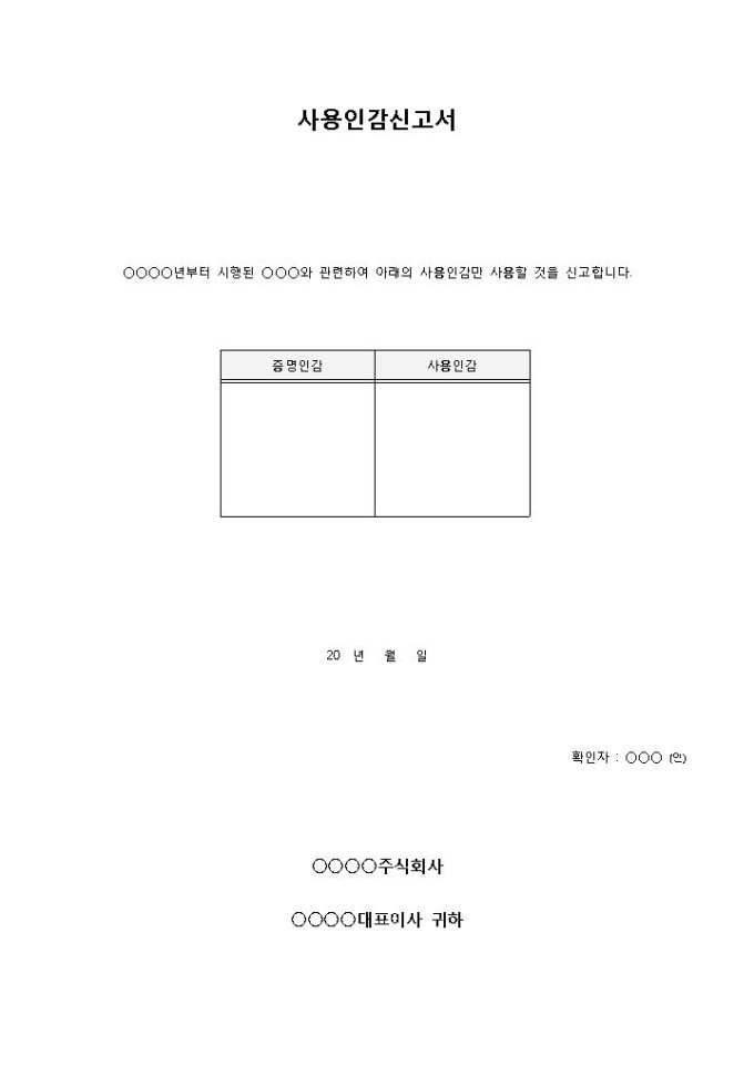 사용인감신고서
