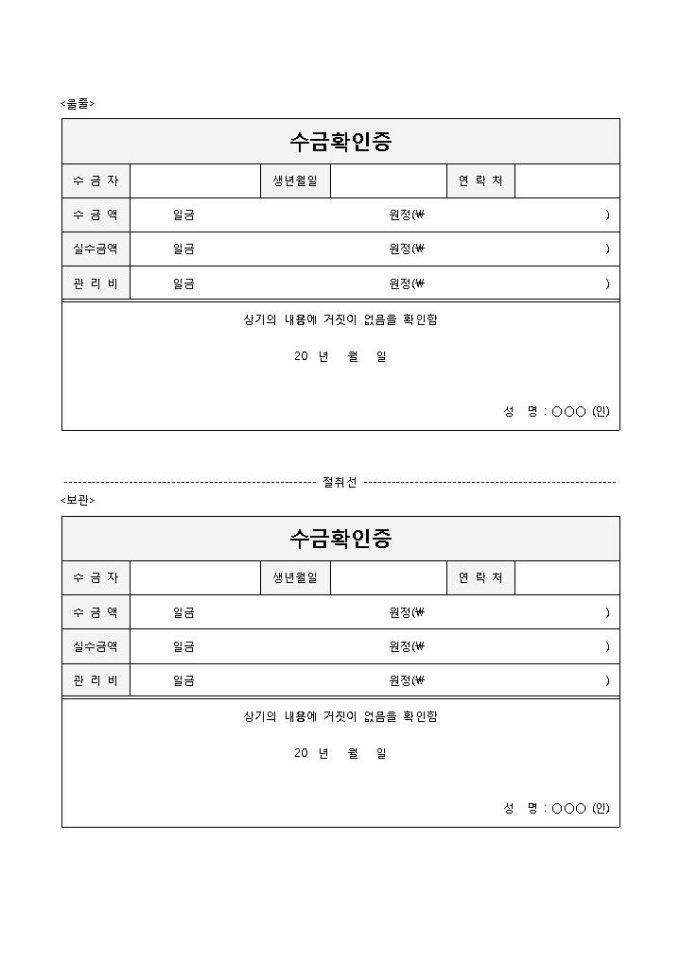 9,000원/월수금확인증 입니다. 수금자, 수금액, 주민등록증, 연락처, 수금액, 실수금액 등으로 구성되었습니다. 수금증 불출 및 보관에 용이합니다.