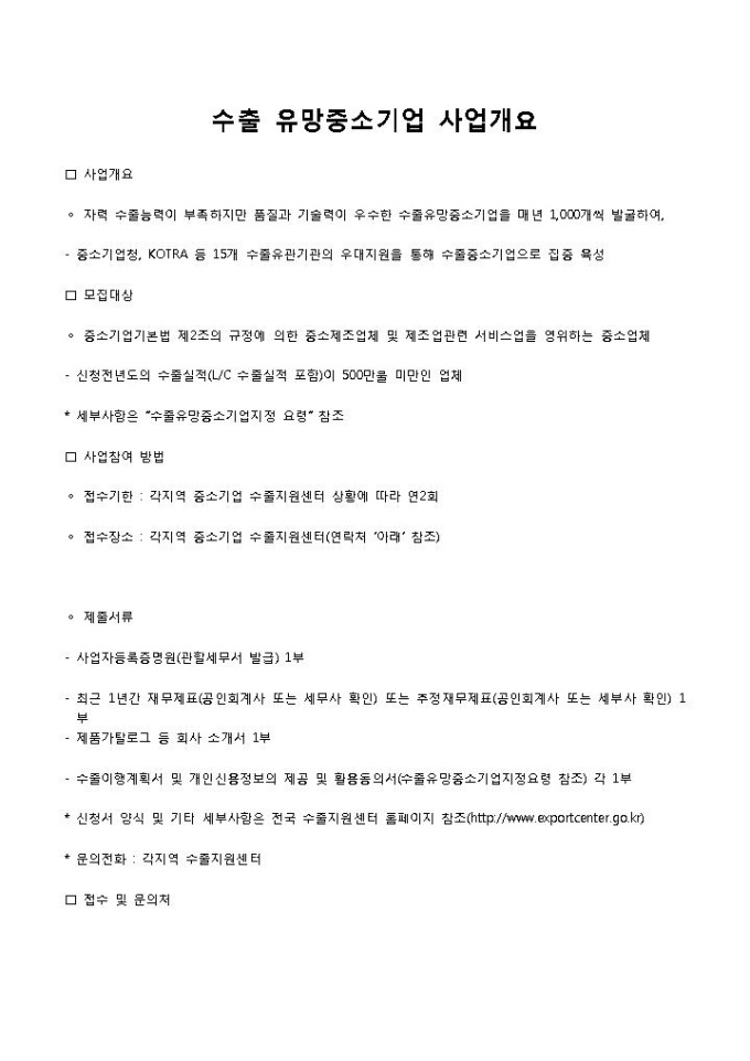 수출 유망중소기업 사업개요