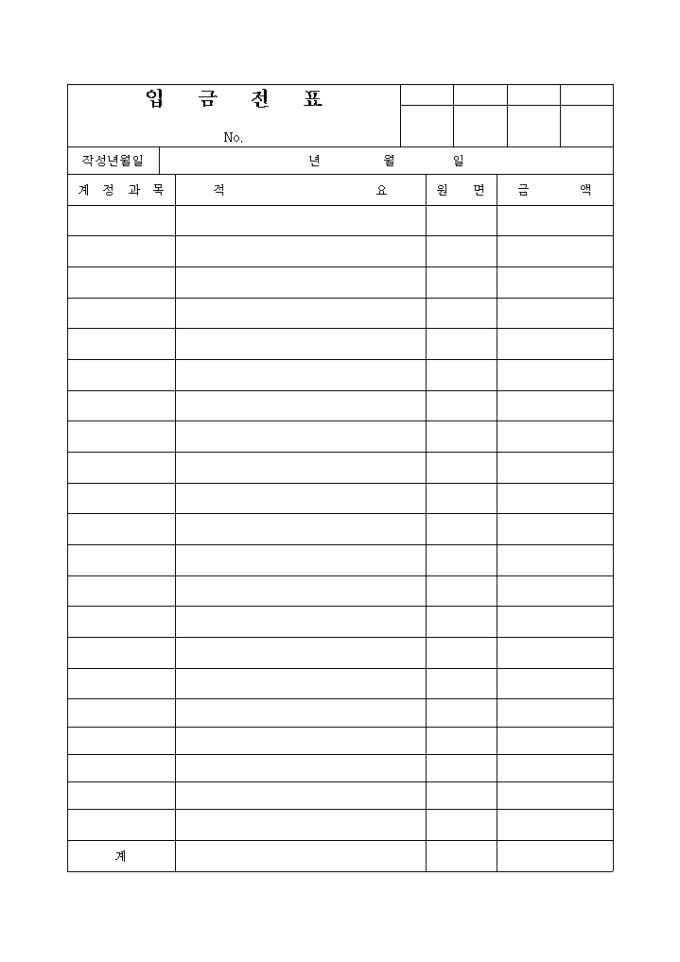 9,000원/월입금 금액에 대한 원면과 금액을 기록하는 입금전표 입니다.