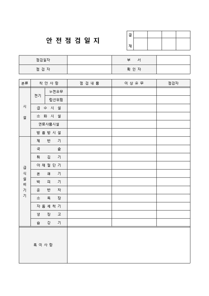안전일지(급식시설)