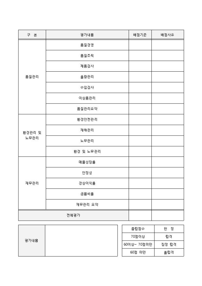업체평가기준표