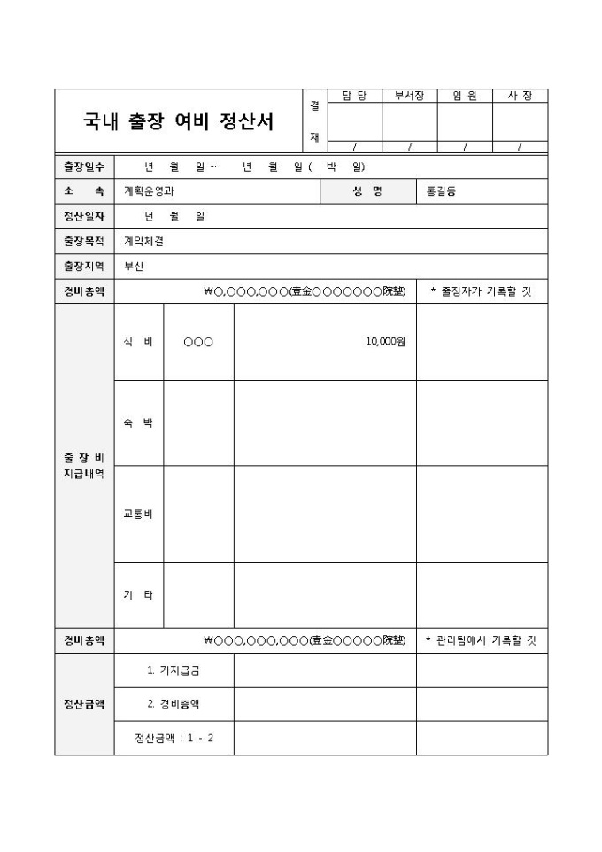 여비정산서
