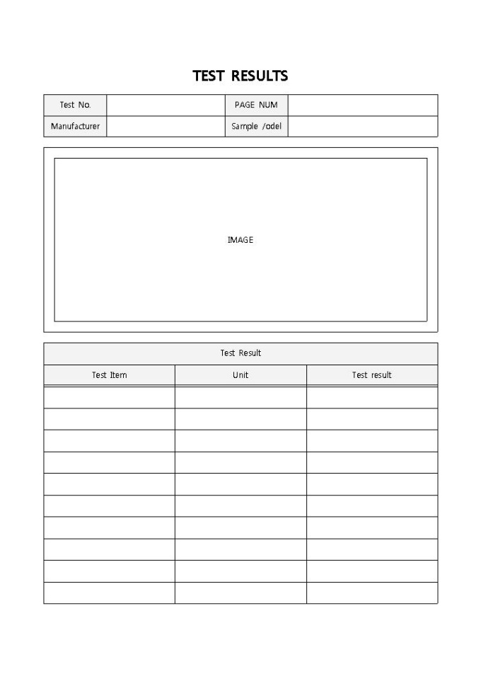 9,000원/월영문성적서 입니다. TEST NO, PAGE NUM, Manufacturer, Sample 등으로 구성되었습니다 . 제품을 점검하고 평가내용을 작성하는데 효과적입니다.