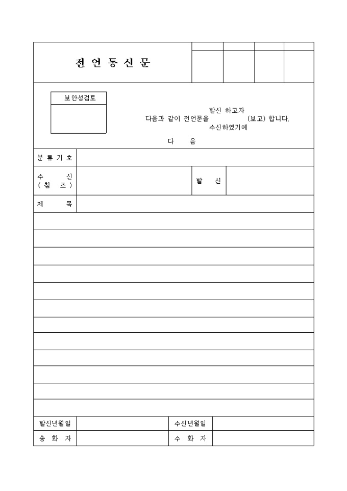 9,000원/월의견이나 안건을 전달할때 사용하는 양식입니다.