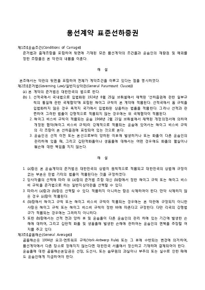 9,000원/월용선계약 표준선하증권입니다. 운송조건, 계약 내용으로 구성되어 있습니다. 준거법과 중재조항을 포함하여 용선계약와 운송인의 재량권에 대한 표준선하증권을 작성할 때 사용할 수 있습니다.