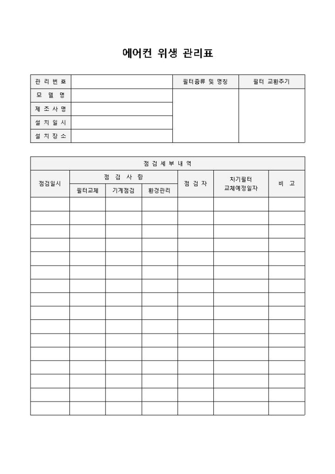 위생관리표(에어컨)