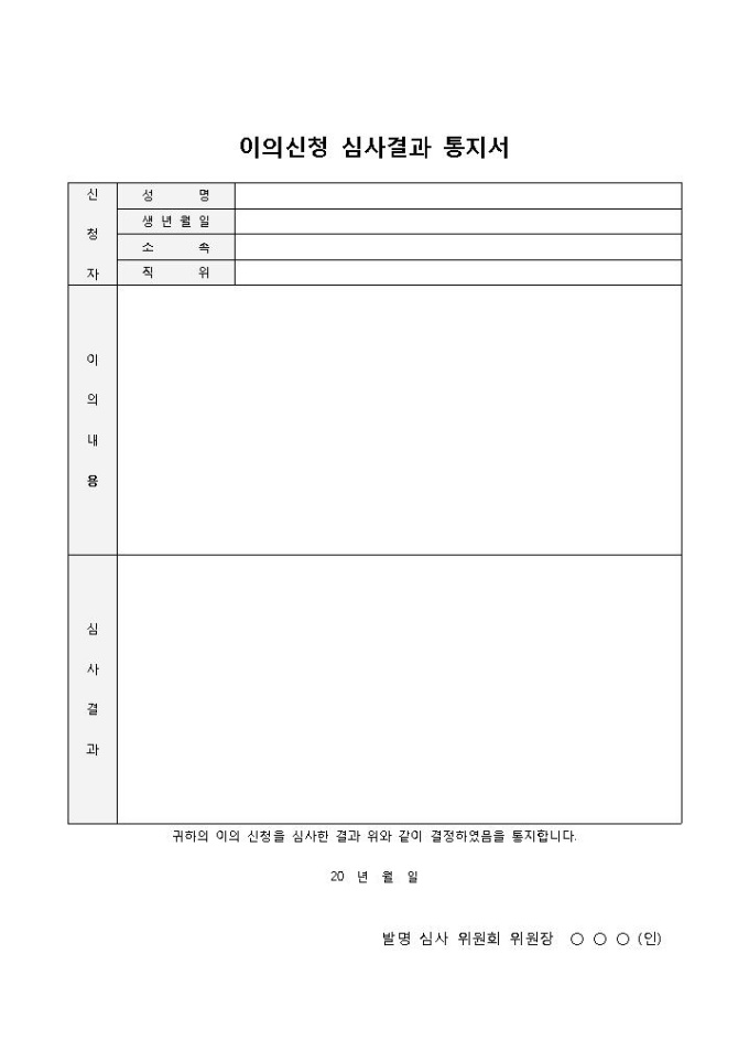 이의신청 심사결과 통지서