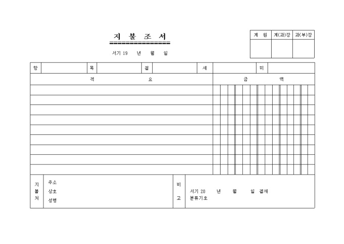 거래 회계상 지불된 내역을 기재하는 양식입니다.