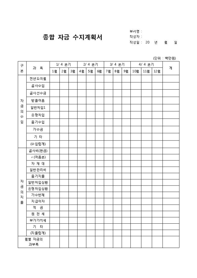 자금수지계획서(종합)