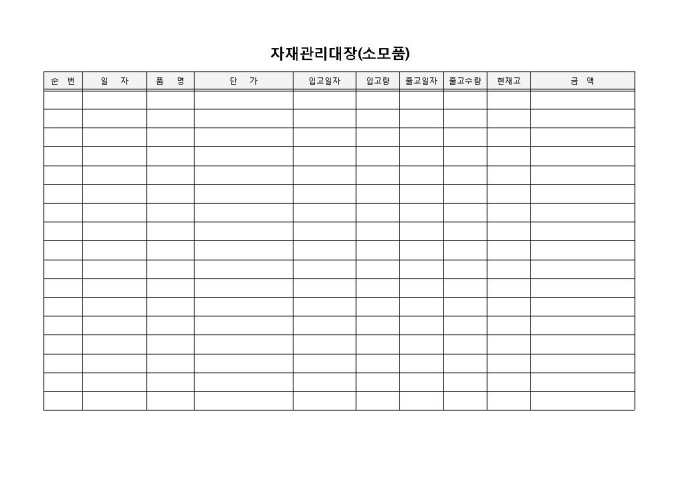 9,000원/월자재관리대장 입니다. 순번, 일자, 품명, 단가, 입고일자, 입고량 등으로 구성되었습니다. 출고일자에 따른 출고량 파악 및 총액계산에 효과적입니다.