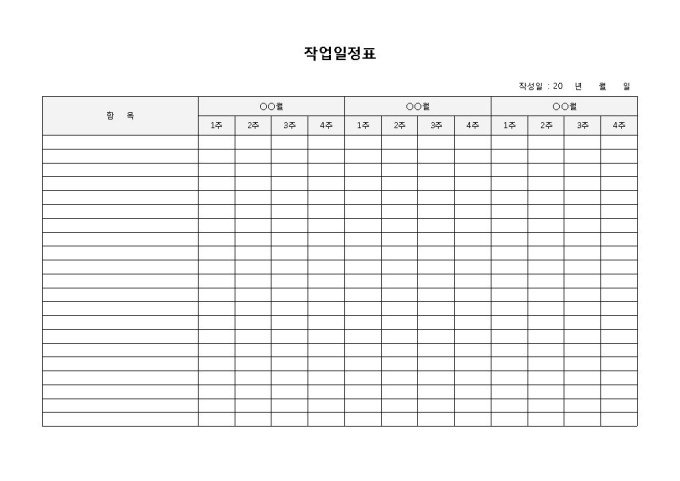 9,000원/월작업일정표입니다. 3개월간의 작업일정을 대략적으로 표시할 수 있도록 만들어졌습니다.