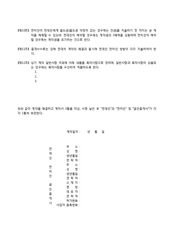 9,000원/월부동산의 전세권 위에 다른 전세권을 설정하는 것으로 전세공간의 일부 또는 전체를 다른 임대인에게 다시 임대한다는 내용의 전대차계약서(보증금 및 월세 부동산) 양식입니다. 조항, 전대인, 전차인, 공인중개사의 인적사항의 항목으로 구성되어 있습니다.