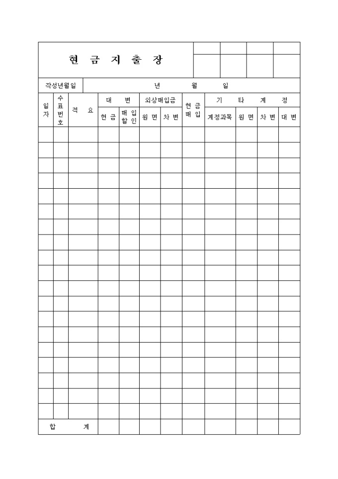 9,000원/월지출한 현금의 내역을 기록하는 현금지출장 양식입니다.