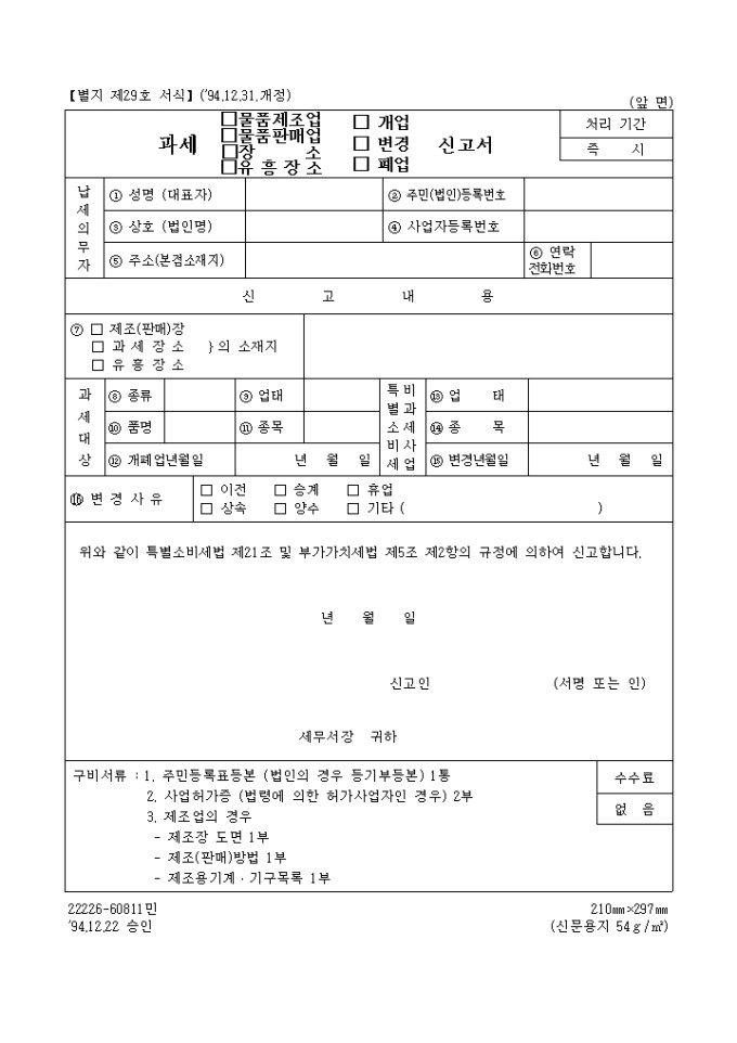 위와 같이 특별소비세법 제21조 및 부가가치세법 제5조 제2항의 규정에 의하여 신고합니다.