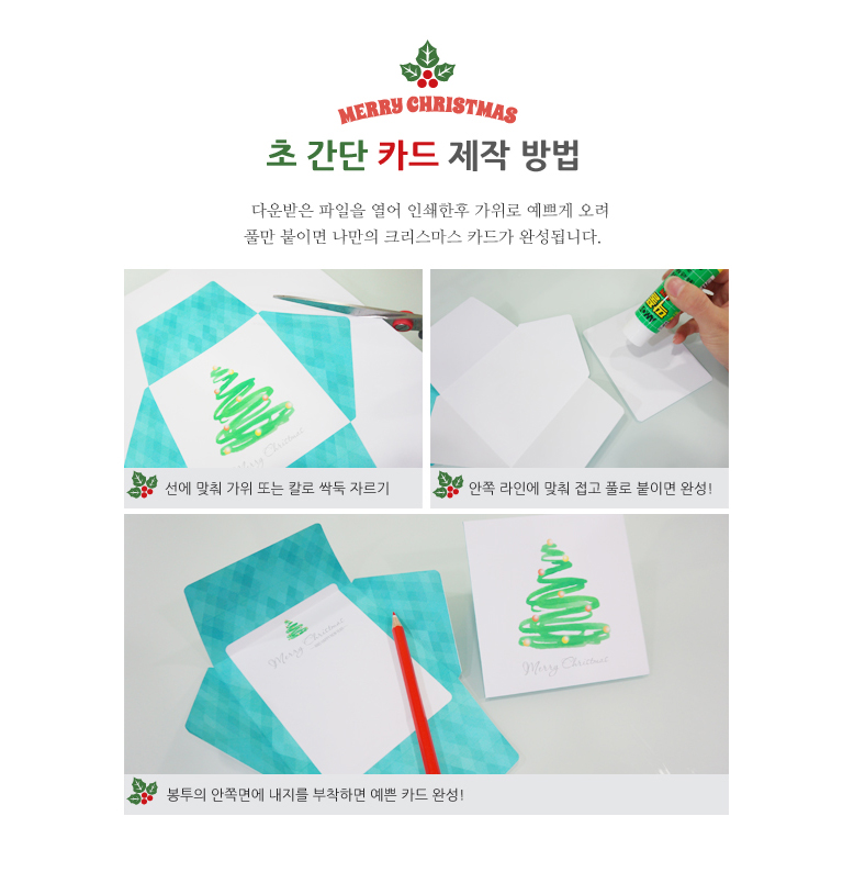 봉투의 안쪽면에 글을 적어 전달할 수 있는 심플한 크리스마스 카드(봉투형)입니다. 카드에 마음을 담아 소중한 사람에게 전달해보세요.