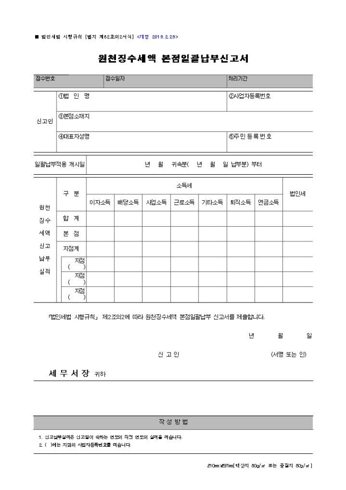 9,000원/월[2014년 연말정산]원천징수세액본점일괄납부신고서입니다.※ 자료제공 : 국세청