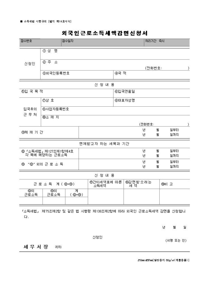 [2014년 연말정산]외국인근로소득세액감면신청서