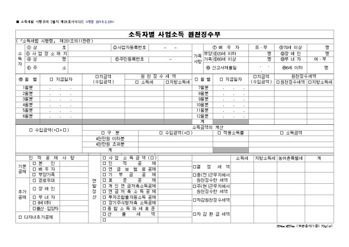 9,000원/월[2014년 연말정산]소득자별사업소득원천징수부입니다.※ 자료제공 : 국세청