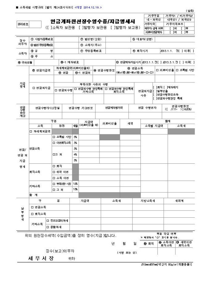 [2014년 연말정산]연금계좌원천징수영수증,지급명세서(2014.12.19 개정)