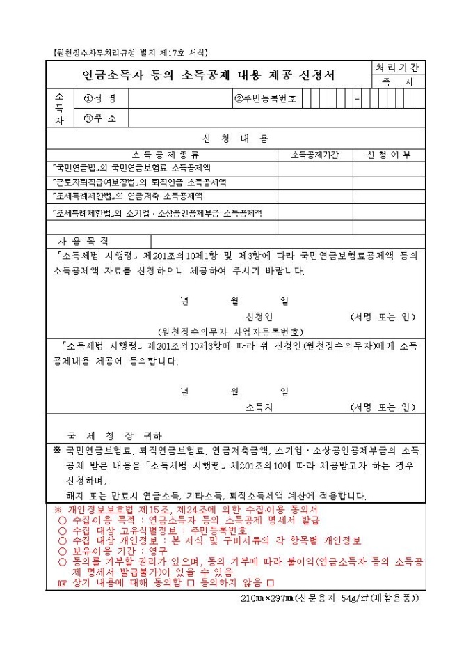 9,000원/월[2014년 연말정산]연금소득자등의소득공제내용제공신청서입니다.※ 자료제공 : 국세청